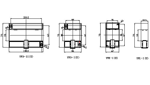 YWL-I(3I)、 YWL-U(3U)型: 75 mm×22.5mm×100mm
